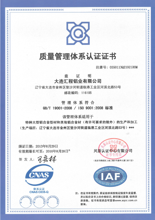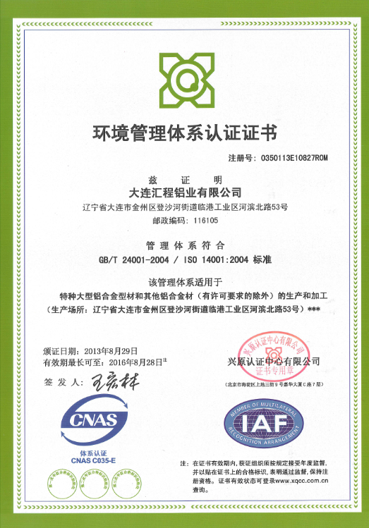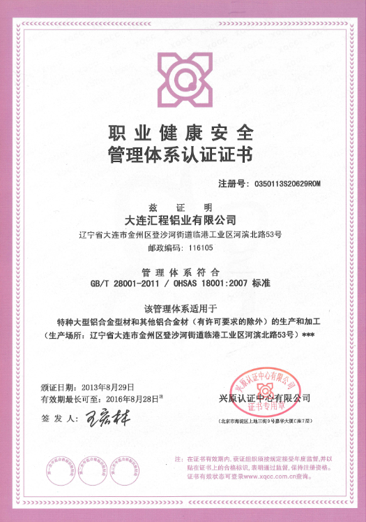 匯程鋁業(yè)獲得質(zhì)量、環(huán)境、職業(yè)健康安全管理體系證書(shū)