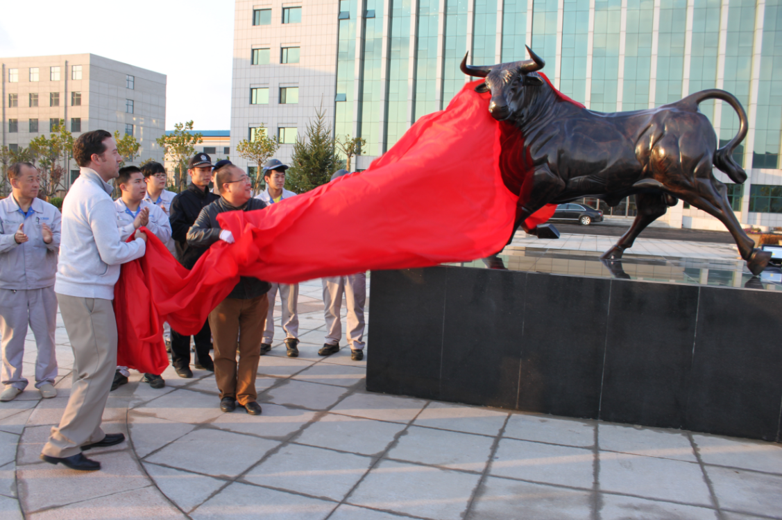 2013-11-04 2013年11月3日下午15:58分,大連匯程鋁業(yè)有限公司的銅牛像落成儀式在公司廣場隆重舉行。