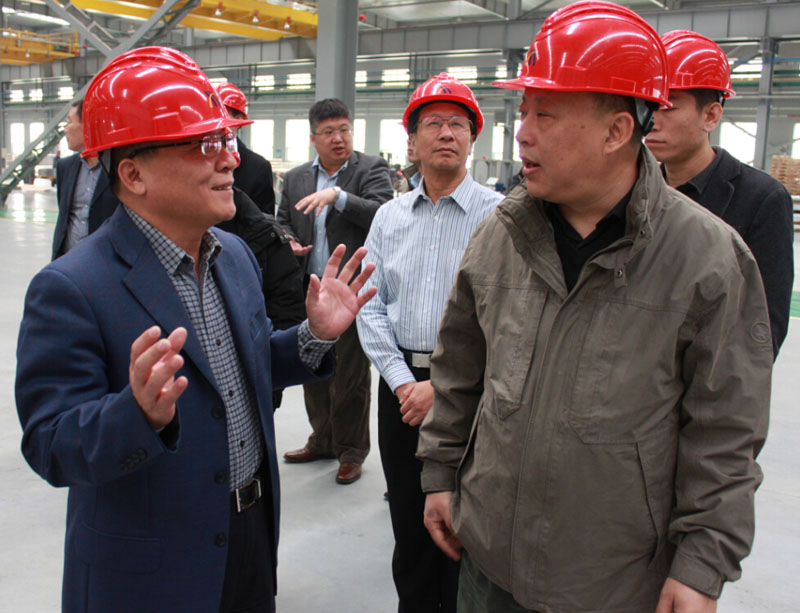 在我司中厚板車間,畢智勇一行詳細了解高精鋁合金強化板的產品工藝、規(guī)格、性能、有關認證及在國防軍工應用情況,我司董事長楊曉光一一做了介紹。